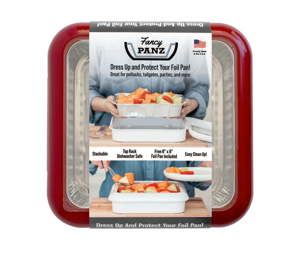 Whether you’re heading to a tailgate, potluck, BBQ, office party, or holiday gathering, Fancy Panz 8x8 makes a stylish and practical addition. It's perfect for serving brownies, dips, salads, pasta dishes, fudge, and more. The stackable design makes traveling with your dishes a breeze, keeping your car clean and your food secure.