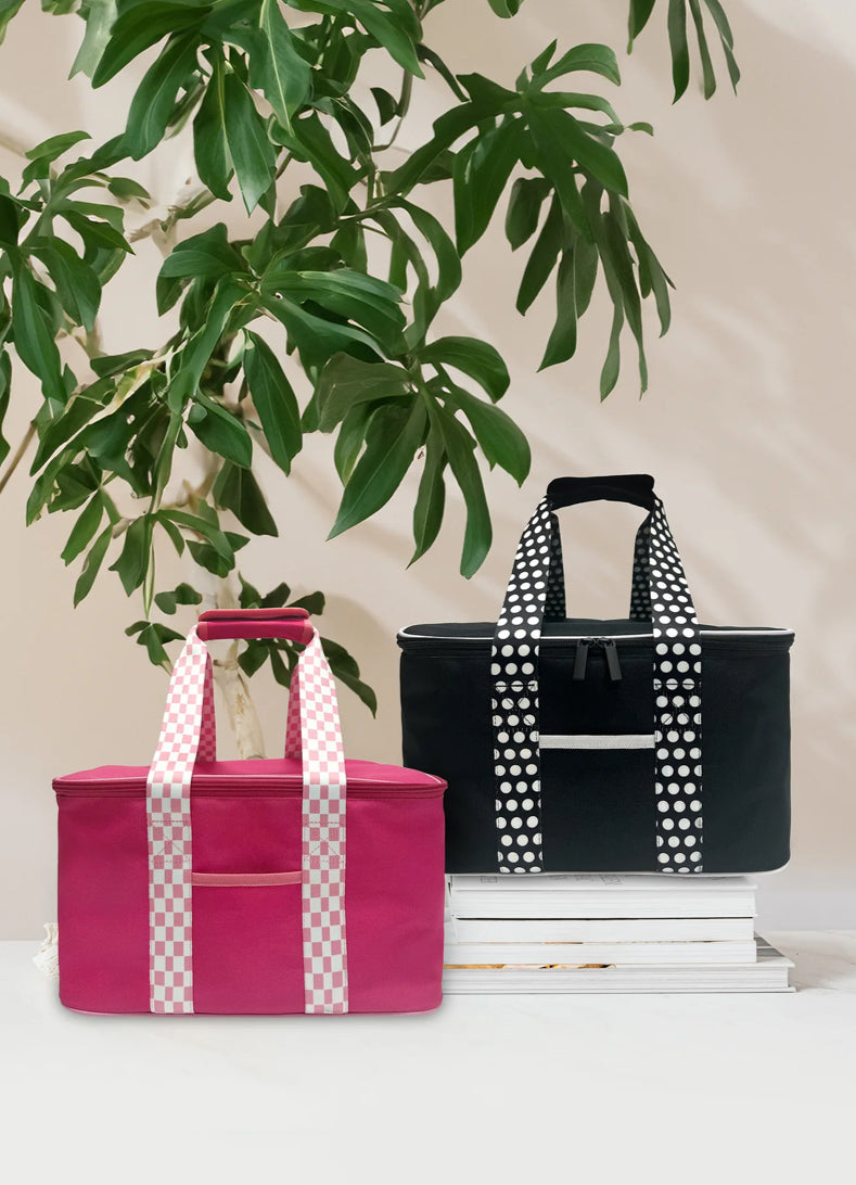 Insulated Fancy Bagz are designed to fit up to 2 Fancy Panz and feature woven straps, one large, netted, zippered interior pocket and one small exterior pocket.