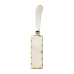 Foiled raw edge marble or mercury glass and stainless steel spreader comes in foiled tin bucket.
