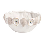 Stoneware bowl features in-mold oyster shell rim with hand-painted detail.