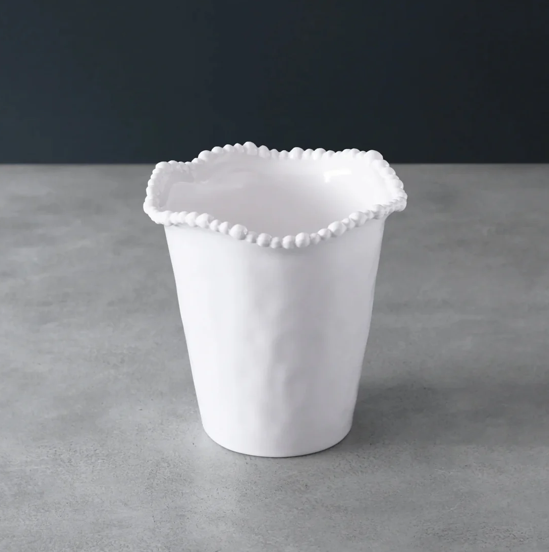 Hold everything! Get organized with the stylish VIDA Alegria Kitchen Utensil Holder (White); an elegantly essential item from Beatriz Ball's Alegria Collection of luxury melamine. With a lively pearl rim and a brilliant organic surface, the utensil holder coordinates with other Alegria kitchen items, as well as our fabulous dining pieces. Perfect for cut flowers or fresh herbs, too. The versatile item has the luster, heft and look of a ceramic piece. Made of luxury melamine for everyday enjoyment, this piece is ideally suited for indoor and outdoor use. Dishwasher safe (top rack), heavy-weight, food safe, BPA and PABA free