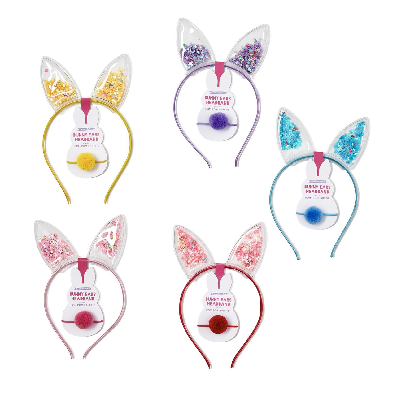 Sequin Filled Bunny Ears Headband and Pom Pom Hair Tie