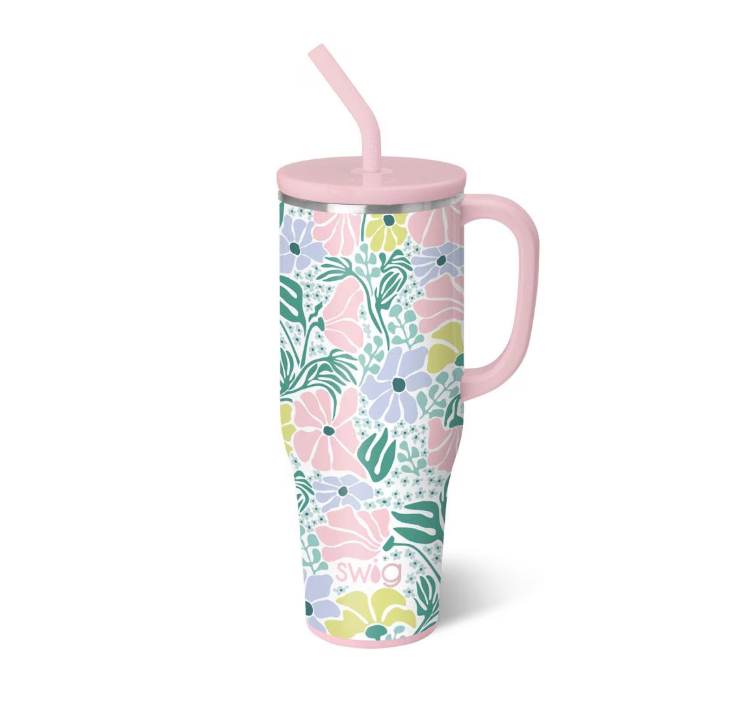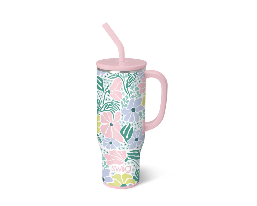 Hydrating has never been easier with our 30 & 40oz Insulated Mega Mugs! A cup holder-friendly frame, a comfort-grip handle, and a plastic straw with a silicone flexi-tip all come together to create your new favorite Swig.