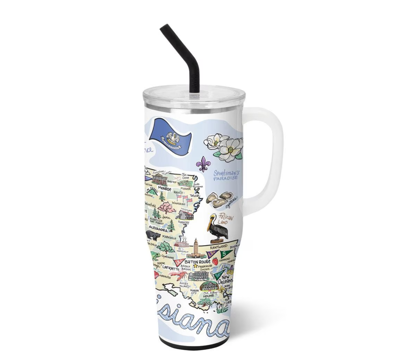 Mega sips, mega chill! 🧊 Bring the comfort of home with you everywhere. These one-of-a-kind designs by Fish-Kiss display what makes Louisiana special. Look closely - you might even find your small town!