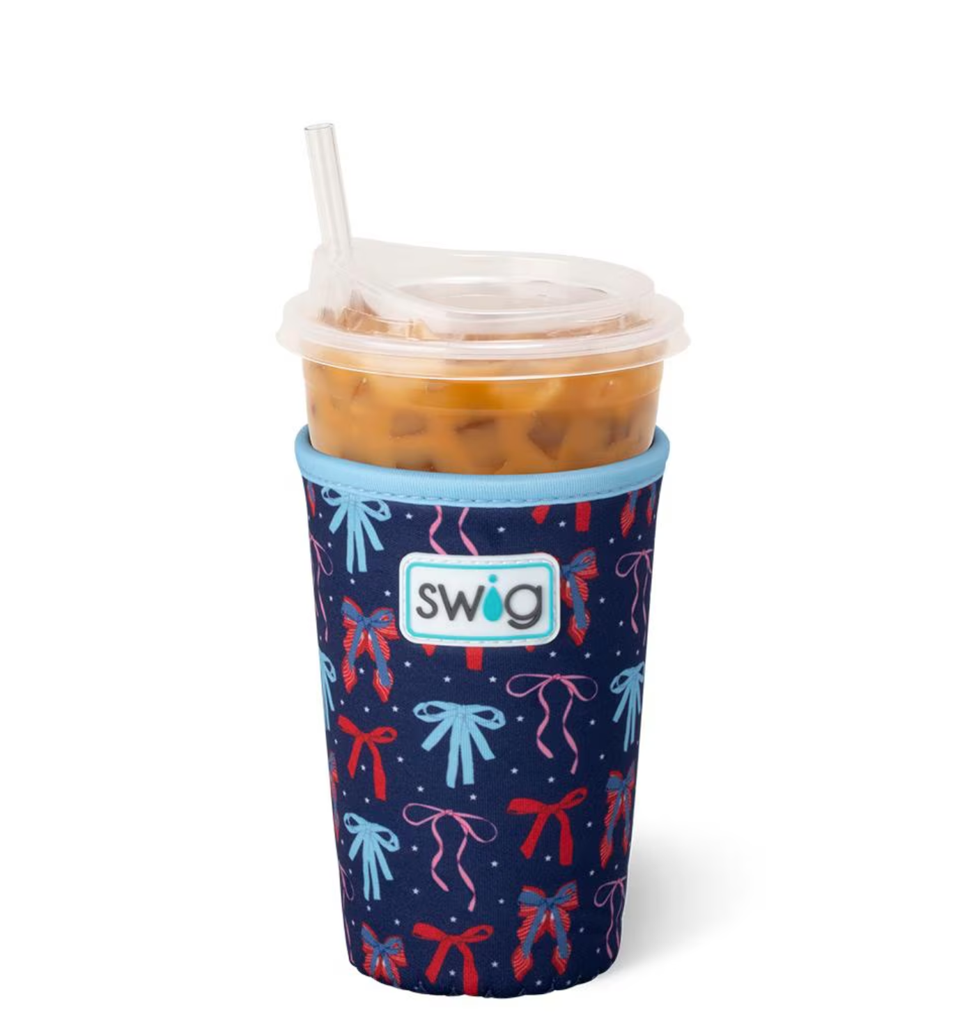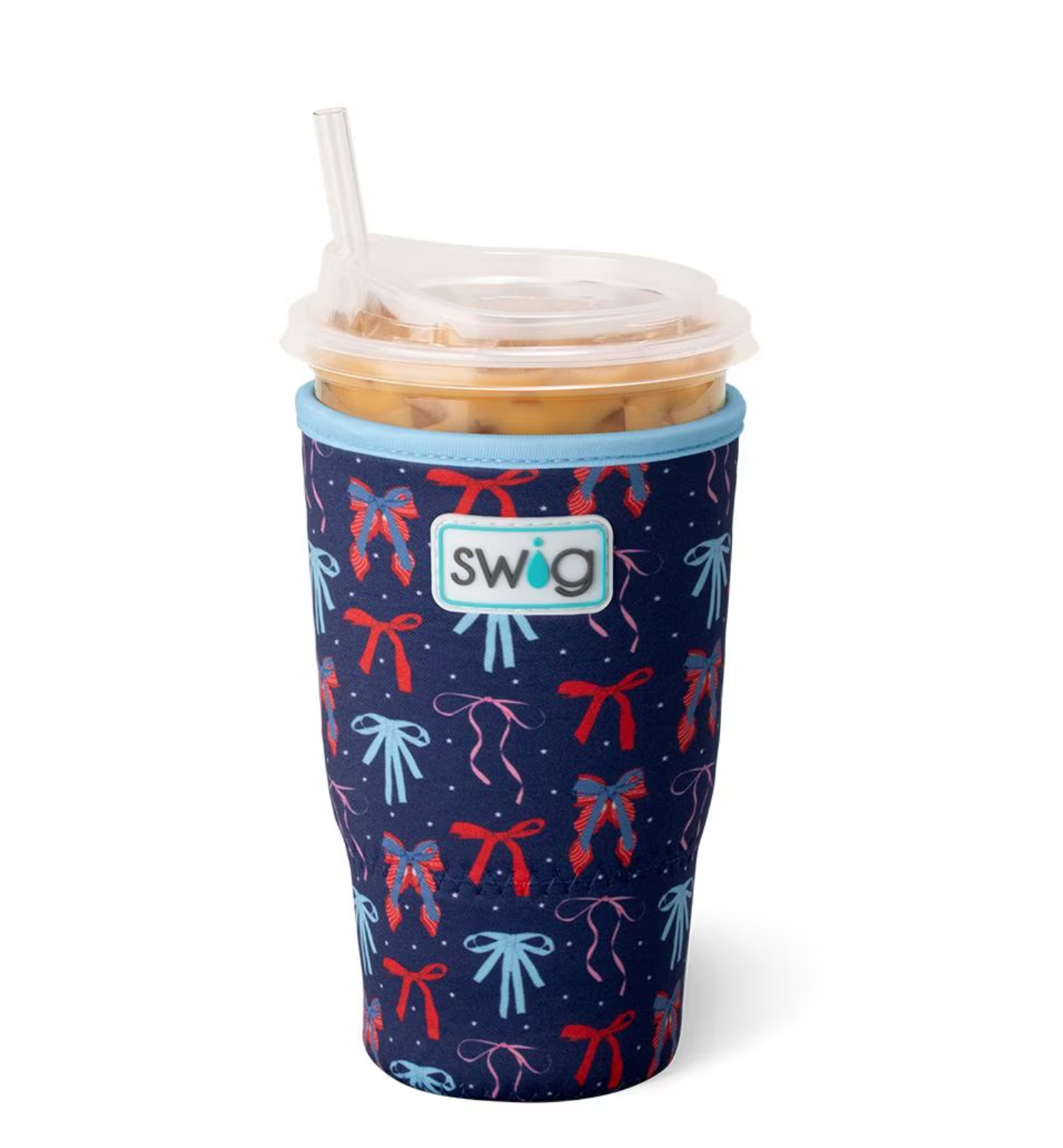 Cool drinks, dry hands! 🧊☕ Dress to impress this summer with preppy patriotic bows on a marine navy background.