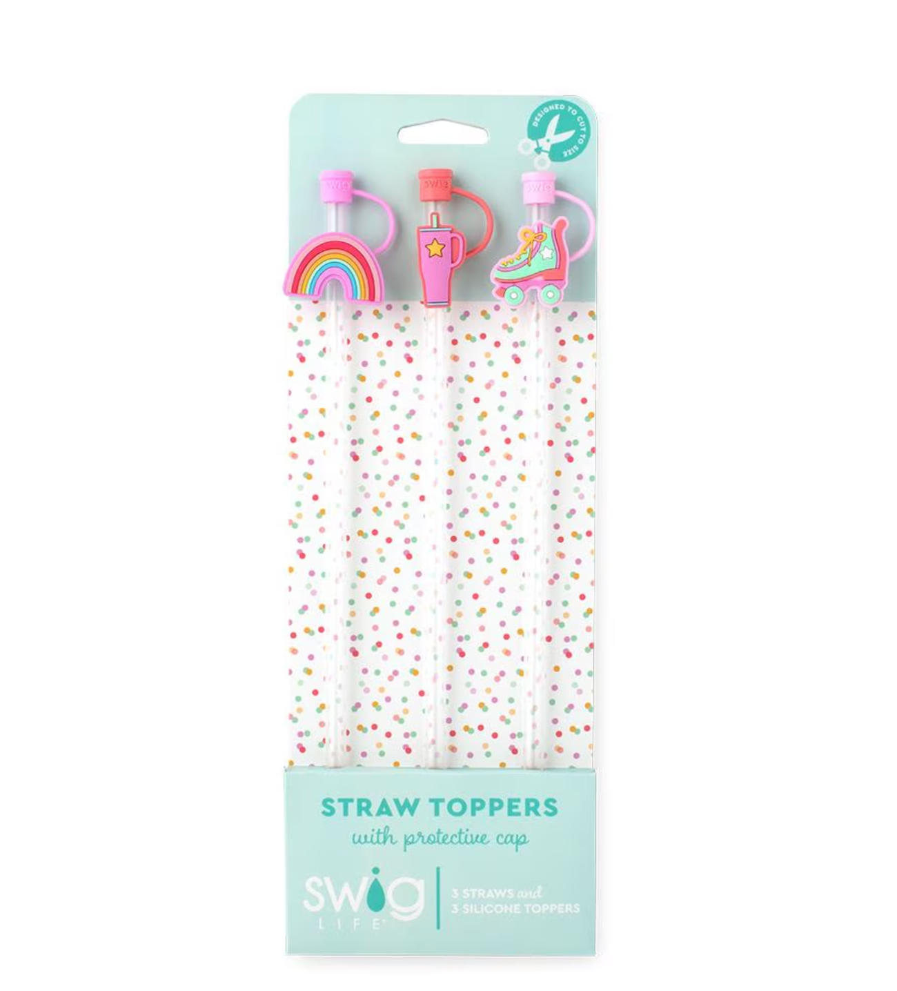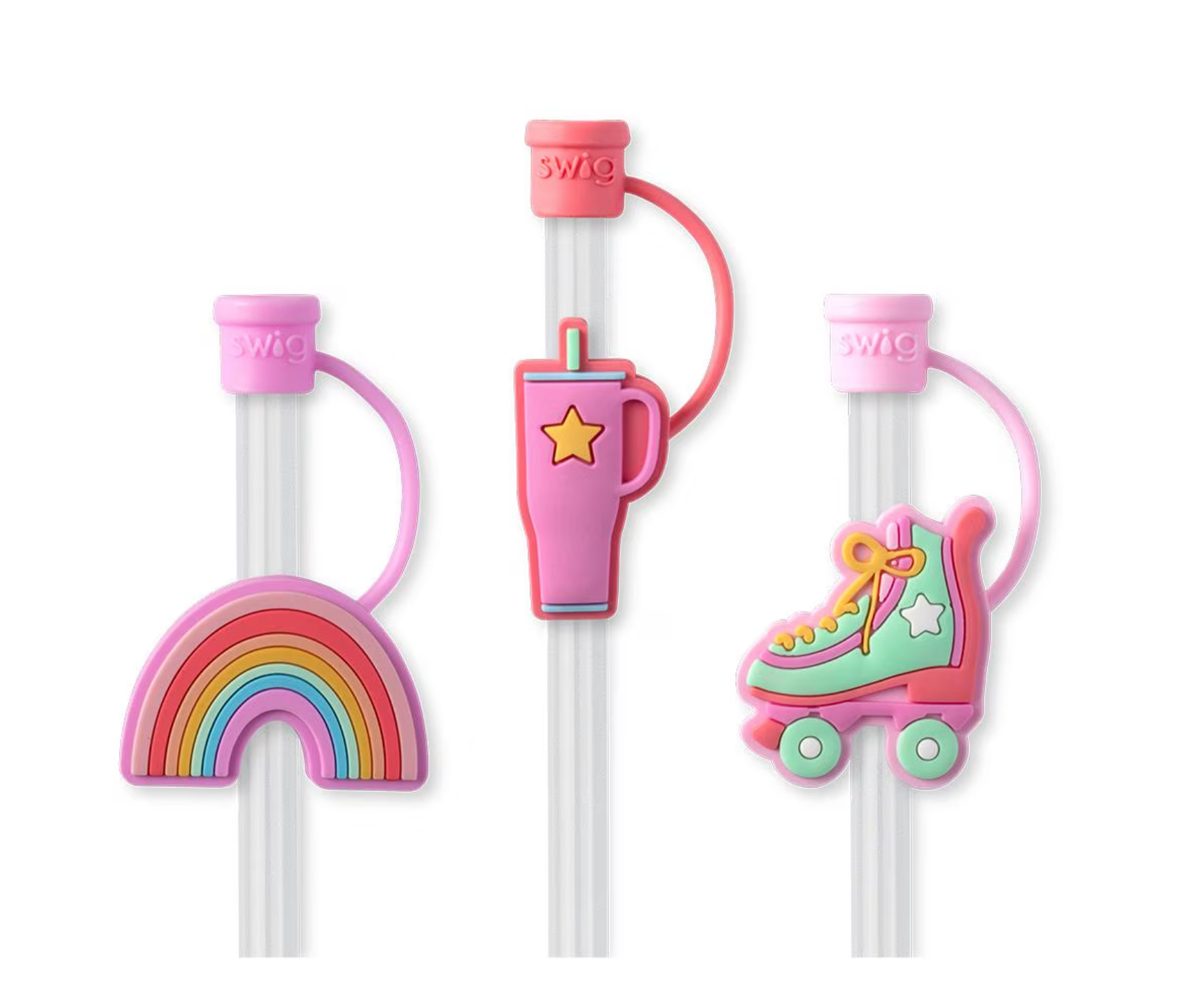 Sip in style while keeping your drinks clean and safe with our adorable Straw Topper Sets! This set features three reusable straws with whimsical silicone charms featuring protective caps. Keep them all for yourself or share them with a friend!
