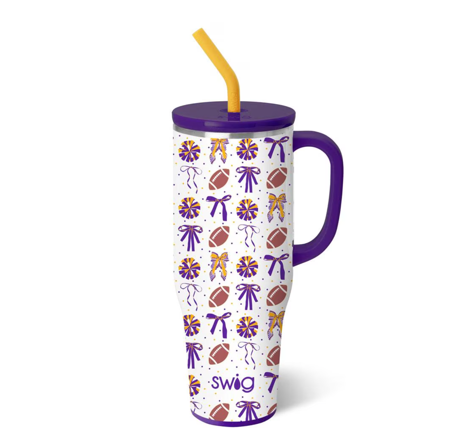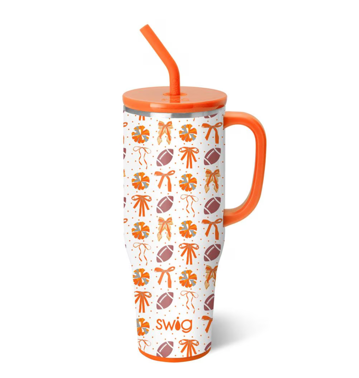 Hydrating has never been easier with our 40oz Insulated Mega Mug! A cup holder-friendly frame, a comfort-grip handle, and a plastic straw with a silicone flexi-tip all come together to create your new favorite Swig.