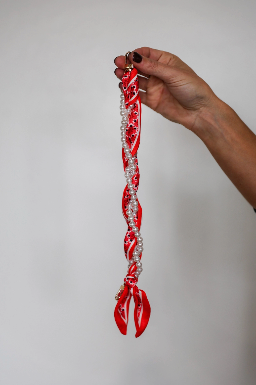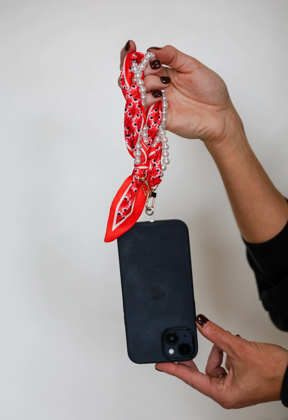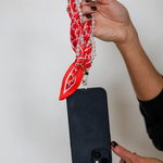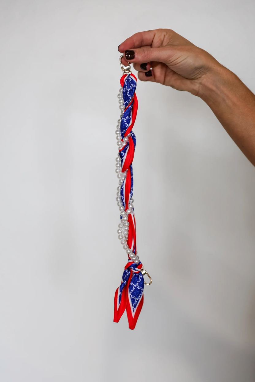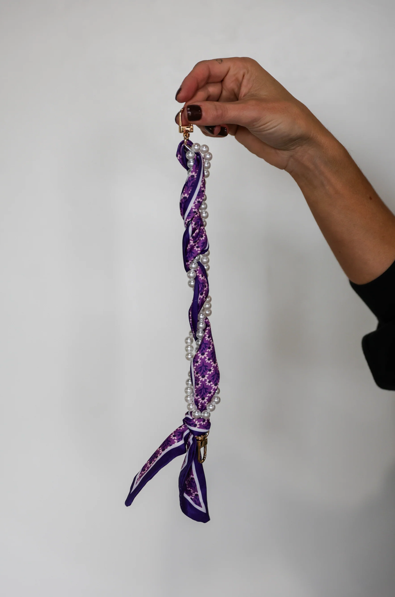Pretty, pearly, and perfect for keeping your phone close—this wristlet is your new must-have. Wrapped in a floral scarf and stacked with faux pearls, it’s giving sweet meets spirited. It clips right onto your phone using the included clear tether (just tuck it into your case and go!). Whether you're cheering from the sidelines, running to class, or grabbing coffee with friends, this little strap is the cutest way to stay hands-free. Key
