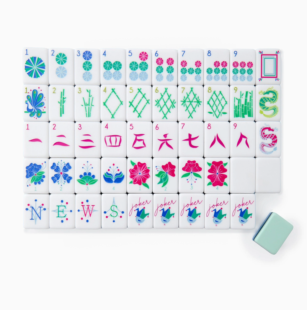 Introducing the Birdie Mahjong collection, inspired by the game's most eye-catching element - the vibrant blue and green Bird Bam! This set features a captivating interplay of navy, seafoam, and light blue tiles, guaranteed to turn heads at your next Mahjong night. These tiles are crafted from high-quality materials for lasting use, the Birdie line is perfect for players of all levels. Each set includes a complete set of 160 tiles, making it the ideal gift for Mahjong lovers or a luxurious upgrade for your game nights. So ditch the boring tiles and add a touch of elegance - Let's play Mahjong with the Birdie collection!