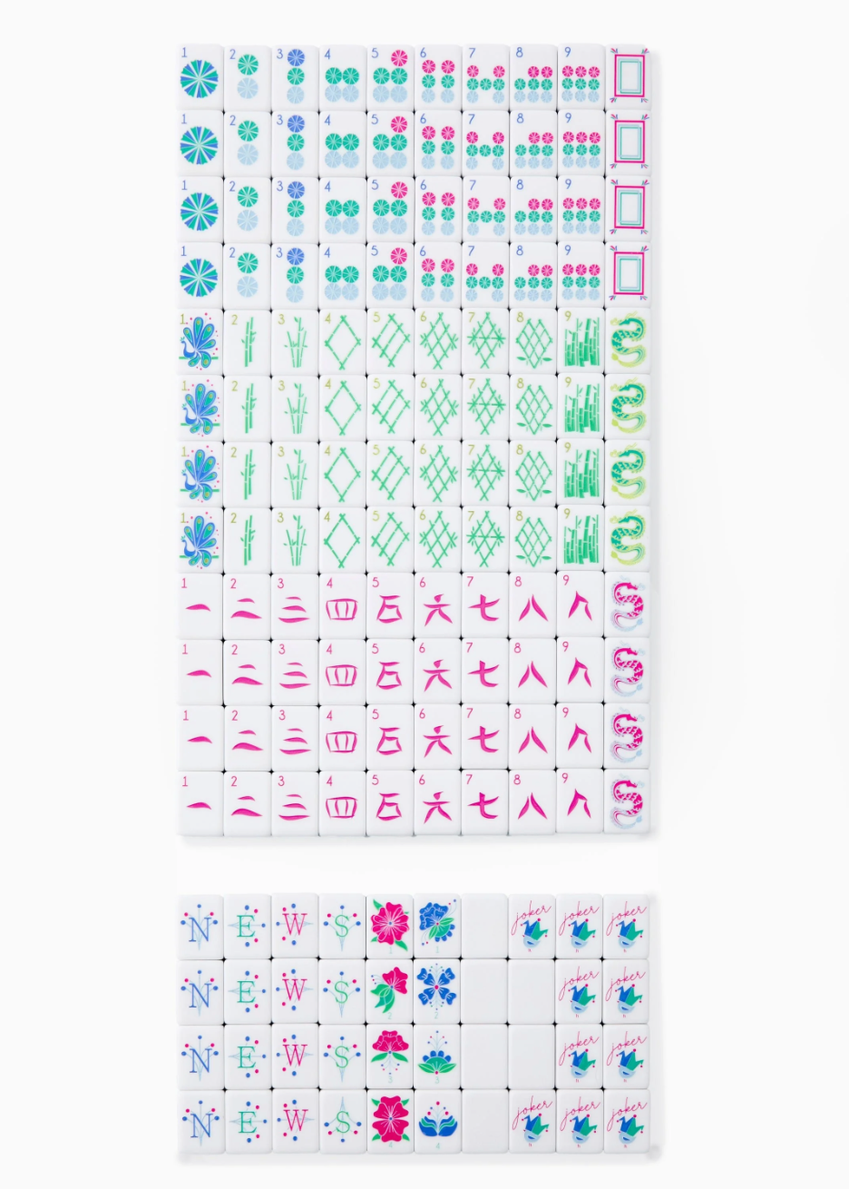 Set includes Tiles, Dice/Coin Bag and 4 Instructional Cards (If playing American Mahjong, will need to purchase NMJL Playing Card separately.