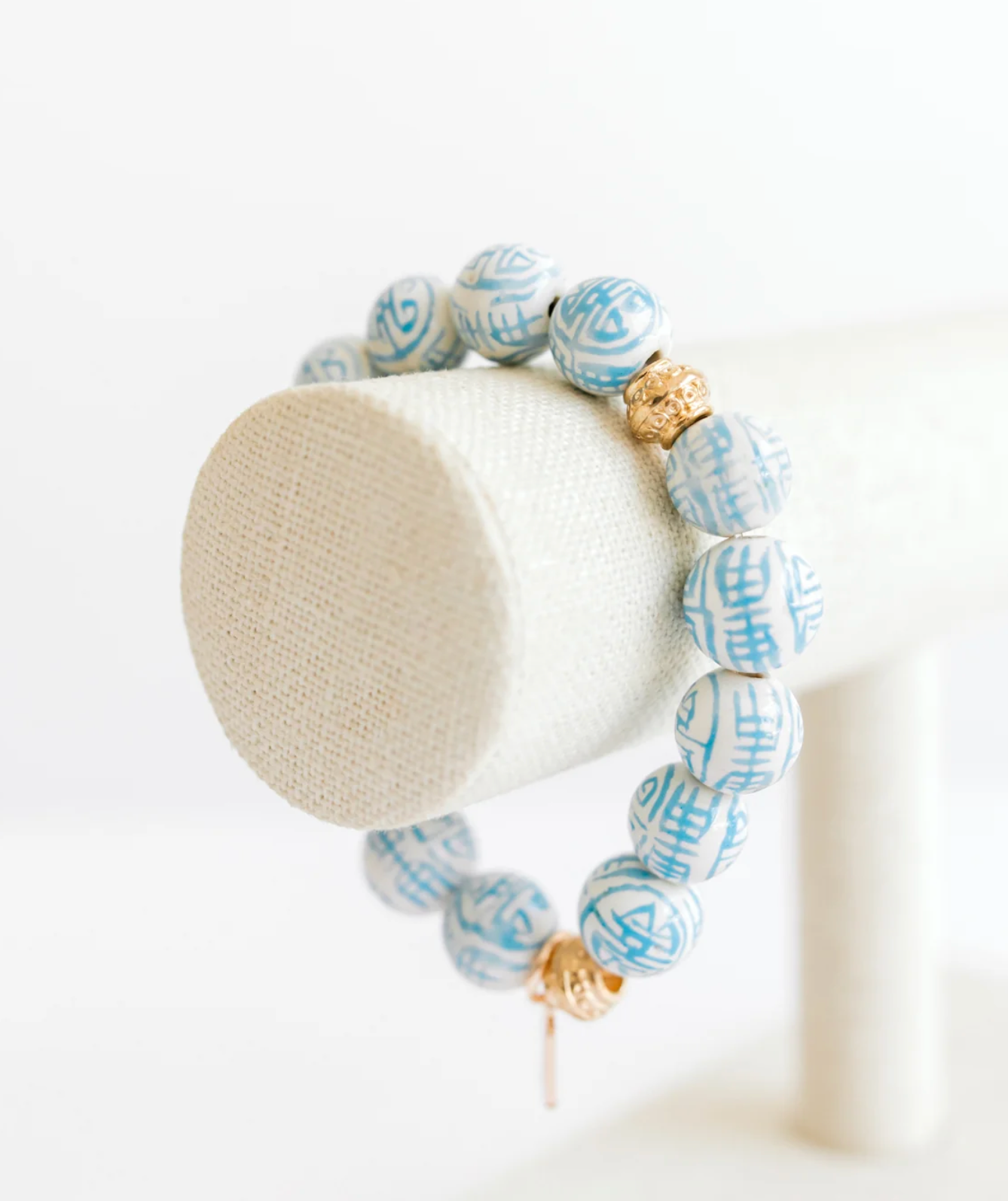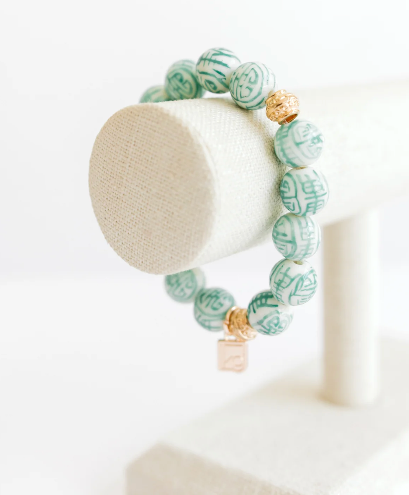 Chinoiserie Bracelets features porcelain beads, painted with Asian motifs and gold plated bead accents . Perfectly coordinates with the Oh My Mahjong Bracelet for a great look.