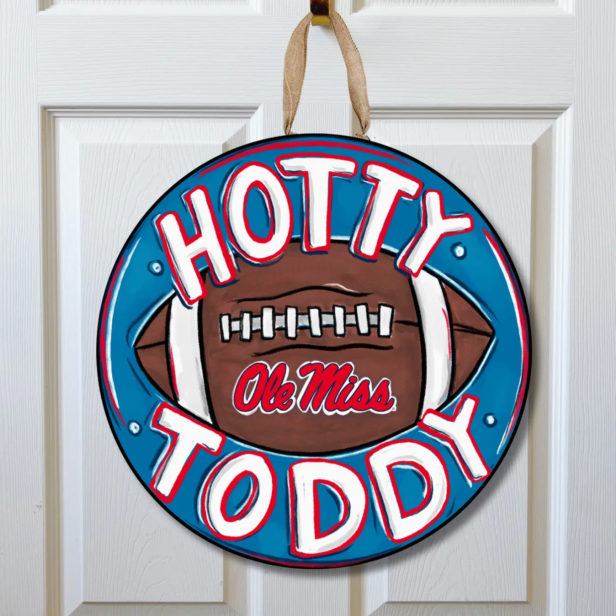 Welcome guests with Southern hospitality and Ole Miss pride with our Mississippi Hotty Toddy door hanger. With vibrant red and navy blue, this door hanger features the iconic 'Hotty Toddy' cheer alongside the University of Mississippi logo.