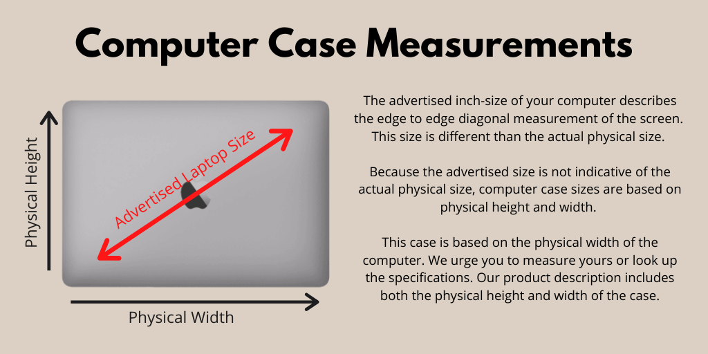 This 15" padded computer case is made of coated canvas with natural leather details. In order to pick the right size for your laptop, measure the actual horizontal and vertical length of your computer which is often very different than the advertised laptop size (which is based on a diagonal screen measurement). Is your laptop 15" or less across? If so, this is likely the size you need.