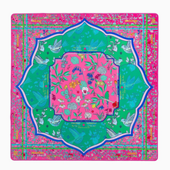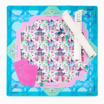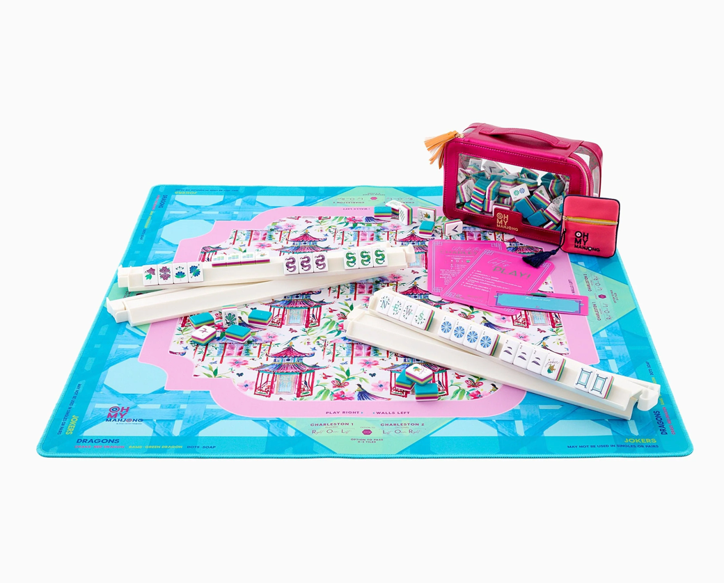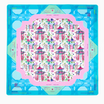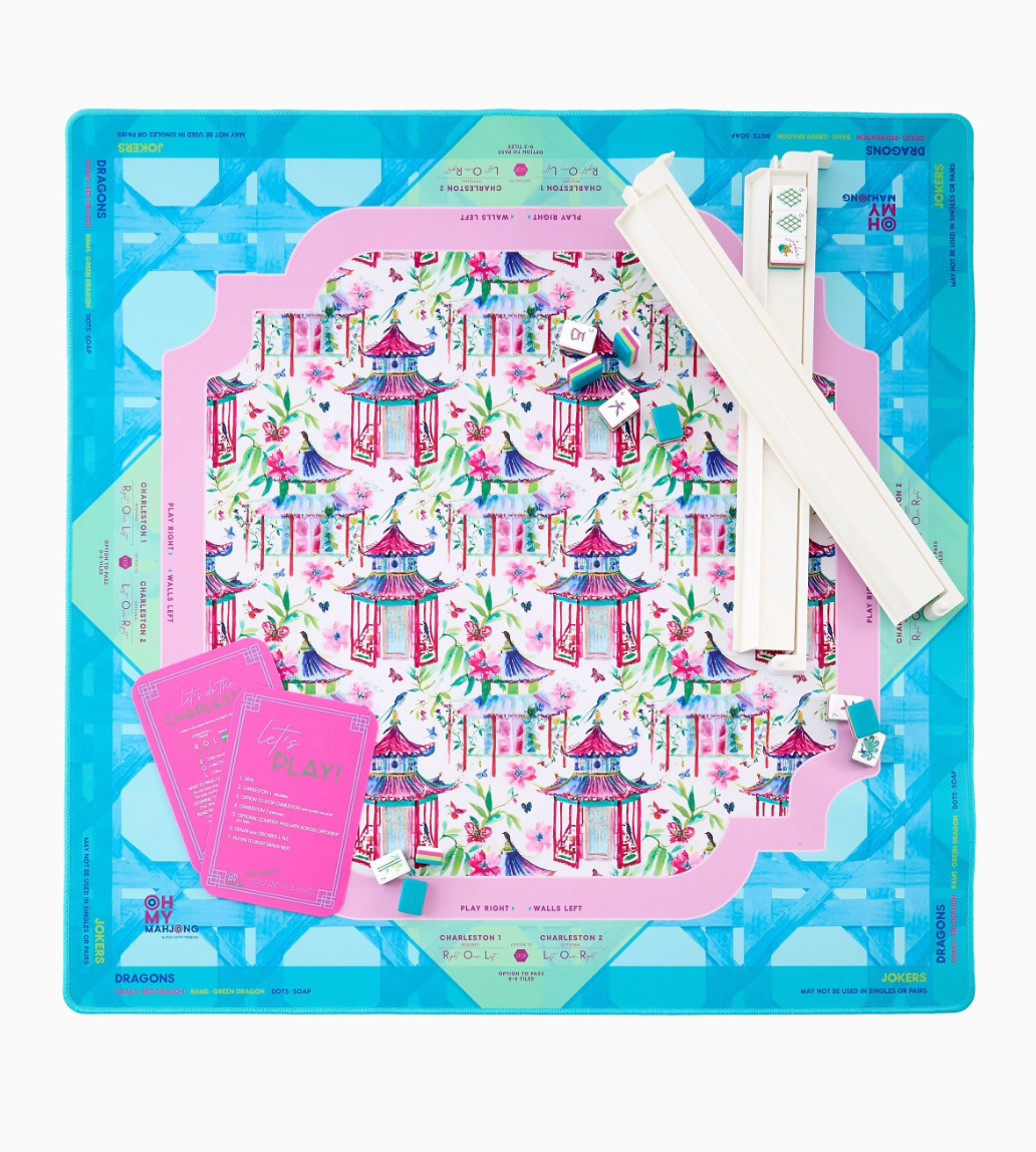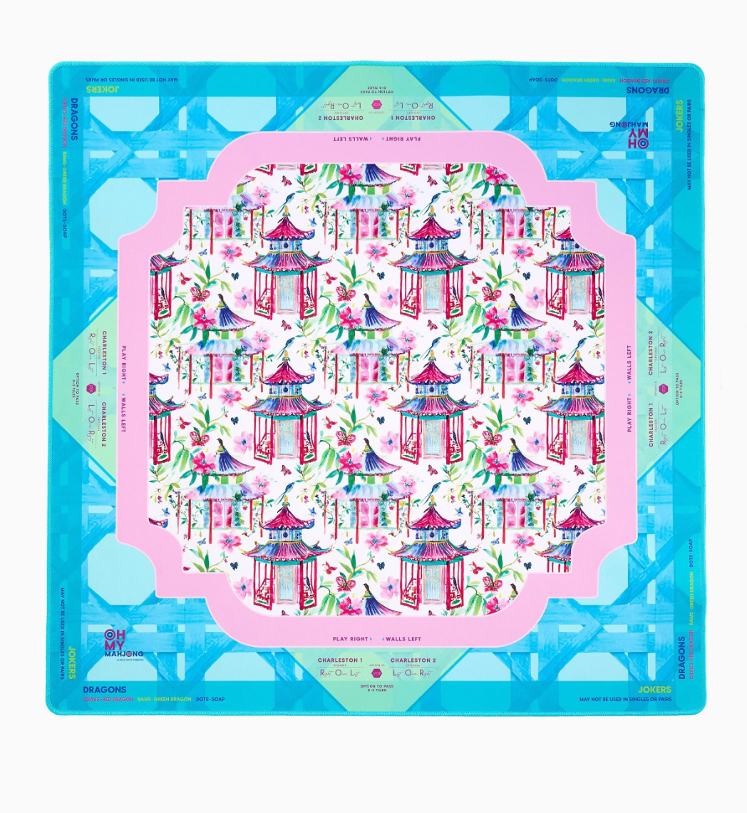 Introducing the Lorelei Mat, a vibrant, artfully chic addition to your Mahjong setup, designed for those with a love for playful elegance and globally inspired design. Drenched in fresh tones of sky blue, punchy pinks, and classic greens, this mat brings together a stunning geometric pattern accented by charming pagodas.