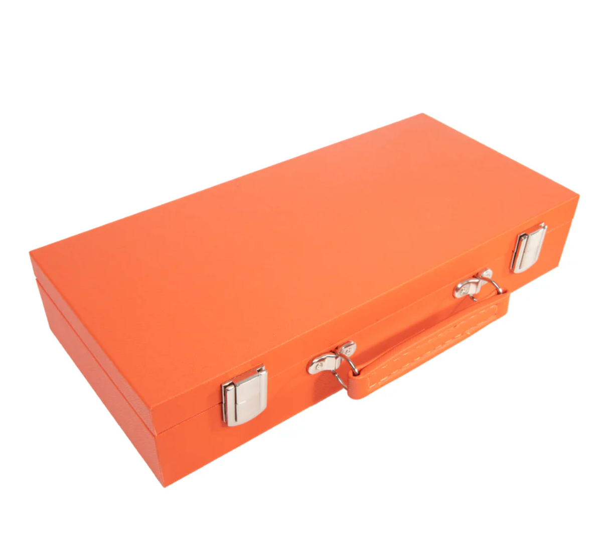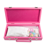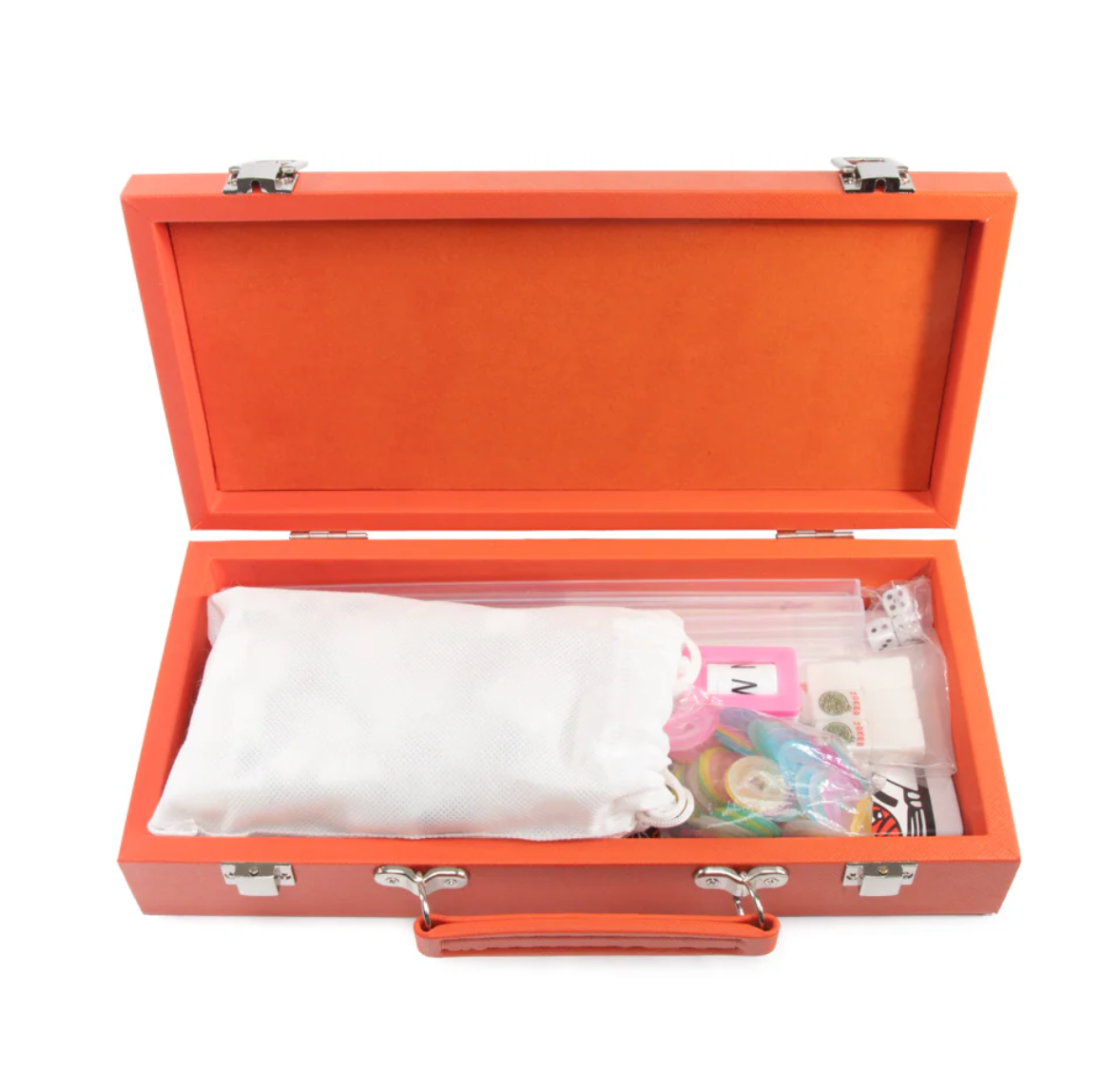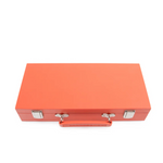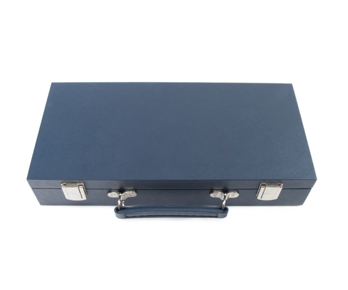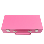 Our Mini Travel Mahjong Set is perfect for trips, journeys, or a fun game night at home! Compact and portable, it comes in a sleek vegan saffiano case with a handle for easy transport. Measuring just 12"x 5.625"x 2.25", it easily fits into your suitcase, backpack, or handbag. Despite its small size, this set includes everything you need for a great game. Inside are 4 clear acrylic trays to keep 166 premium 20mm tiles organized: 36 dots, 36 bams, 36 craks, 12 dragons, 16 winds, 16 flowers, 10 jokers, and 4 blank spares. It also includes 4 detachable acrylic pushers and stands, 3 large dice, 100 money chips, and 1 wind indicator. New to Mahjong? No worries! Clear instructions make it beginner-friendly but still fun for experts!