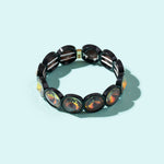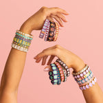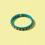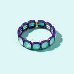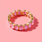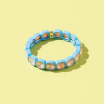 Penelope Gold w/ Rainbow Small Rectangle Stones Enamel Stretch Bracelet